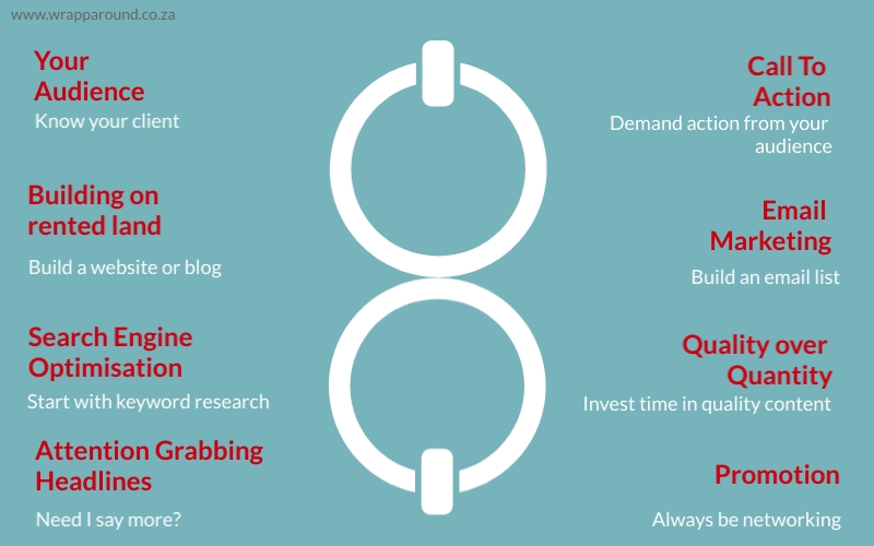 • Building on rented land – Unless you own Facebook or Twitter, any content you post on these platforms is not yours. Create your own platform – website or blog – which will be the hub of all your content.